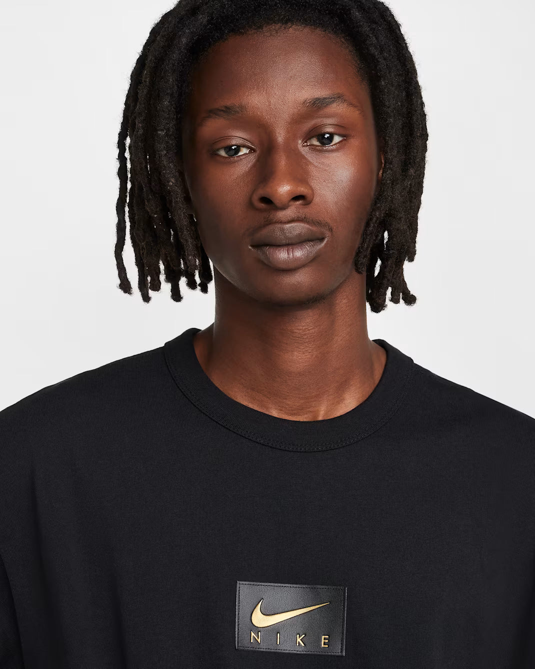 Un parche de piel sintética con el logo Swoosh dorado en lámina destaca en el pecho de esta camiseta clásica. Hombros caídos, mangas más largas y un corte holgado en cuerpo y caderas le dan un look relajado e informal. Su tela de algodón grueso y de alta calidad ofrece una caída rígida y un tacto estructurado.